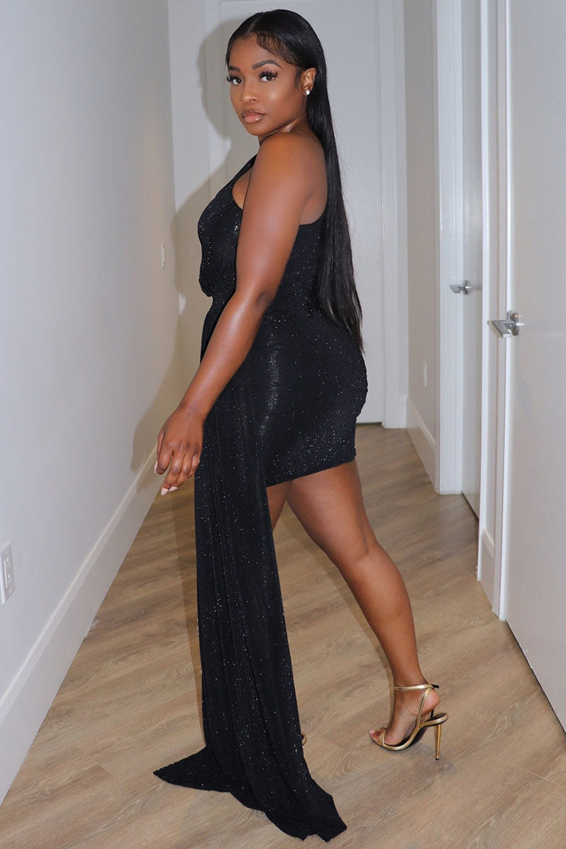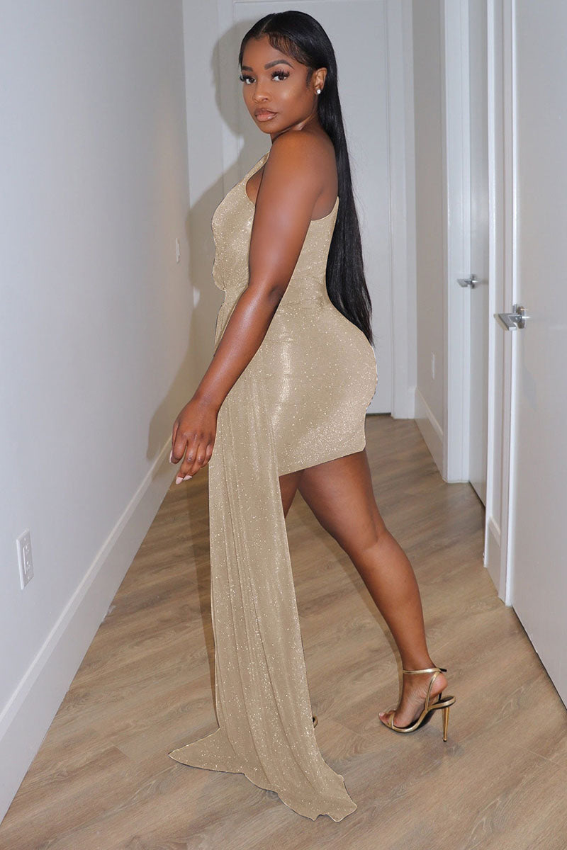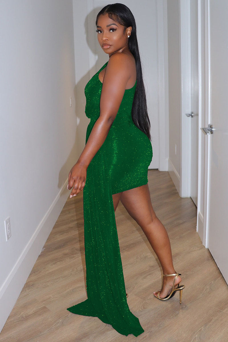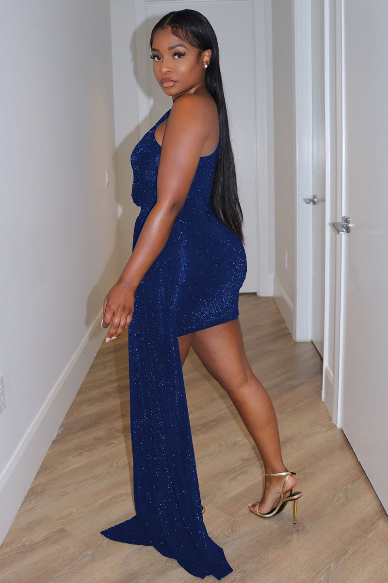 Sparkle One Shoulder Side Train Party Prom Mini Dresses